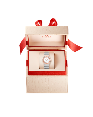 scratch-resistant saphire crystal. The hands, OMEGA logo, Constellation star and