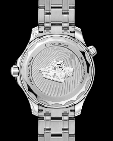 OMEGA’s innovative NAIAD LOCK. On this model, a stainless steel bracelet